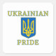 Dieses Aufkleber-Design enthält fett gedruckten Text, der den UKRAINISCHEN PRIDE liest und das Wappen-Schild der ukrainischen Nationalflagge enthält.