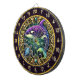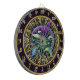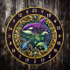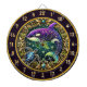 Erschaffen Sie einen faszinierenden Blickpunkt in Ihrer Fischerhütte oder in Ihrer Menschenhöhle mit dieser unter Wasser inspiriert Orca-Dartboard-Dekoration. Im atemberaubenden Zentrum befindet sich ein Orca, der in lebhaften lila, goldenen und blauen Farbmustern gehalten ist und an das sich das aufwändige Buntglas anlehnt. Neben dem Orca fügt eine detaillierte Schildkröte dem Design eine beruhigende, natürliche Touch hinzu. Gerahmt in einem runden Rahmen von goldenen filigranen und lebendigen Edelsteinen, strahlt das Kunstwerk rustikalen Charme und eine Fantasie aus. Die leuchtenden himmlischen Akzente verleihen ihm eine einzigartige Anziehungskraft, die es perfekt macht, um Erholungsräume wie Spielräume oder Lodges zu verbessern. Dieses Stück eignet sich ideal für Meeresleute, Abenteurer im Freien und alle, die eine kühne, auffällige Dekoration schätzen. Ob Dartboard oder als Wandzentralstück dargestellt, es wird sicher Aufmerksamkeit erlangen und Gespräche auslösen. Mit seiner Kombination aus lebhaften Farben und aufwändiger Handwerkskunst verwandelt dieses Kunstwerk jeden Raum in einen inspirierend Rückzugsort. Fügen Sie Ihre Kollektion mit diesem einzigartigen Orca- und Schildkrötendesign zusammen und bringen Sie Eleganz und Kreativität in Ihre Wände.
