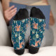 Ein sich wiederholendes Aquarellmuster mit Tintenfischen, Seepferden, tropischen Fischen, Muscheln, Korallen und Algen auf tiefblauem Hintergrund.