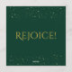 Celebrate the birth of Christ with this elegant Christmas party invitation featuring a golden tree design on a deep emerald background. The verse “For unto us a child is born, unto us a son is given!” beautifully proclaims the heart of Christmas. Gold typography, festive details, and the word “Rejoice!” on the back create a joyful, faith-filled invitation to your holiday gathering.