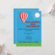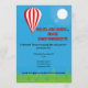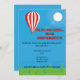 Featuring a playful hot air balloon illustration with bright, cheerful colors and a humorous tagline like “Up, Up & Away… from responsibility!”, this invitation sets the tone for a lighthearted, joyful celebration.