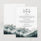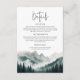 Erfassen Sie die stille Majestät der Berge mit der Wasserfarben-Einlagekarte "Verdant Peaks Misty Forest". Dieses Design zeigt eine atemberaubende, handgemalte Landschaft aus hoch aufragenden Immergrünen und sanften Gipfeln, die in einem weichen, ätherischen Nebel gehüllt sind. Die tiefen Waldgrüntöne und rauchigen Teals schaffen eine stimmungsvolle, organische Atmosphäre, die perfekt für eine Berghochzeit oder eine intime Waldzeremonie ist.