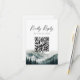 Vereinfachen Sie Ihre Hochzeitsplanung mit der Verdant Peaks Misty Forest Watercolor RSVP-Karte mit QR-Code. Diese moderne Antwortkarte kombiniert die Bequemlichkeit der digitalen Nachverfolgung mit der atemberaubenden Schönheit der Natur. Mit einer stimmungsvollen, handgemalten Landschaft aus hoch aufragenden immergrünen Bäumen und Bergkämmen, die in einem weichen, ätherischen Nebel gehüllt sind, ist sie die perfekte Ergänzung für ein Waldrefugium oder eine Hochzeit in den Bergen.
