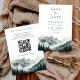 Bestimmen Sie mit der "Verdant Peaks Misty Forest Watercolor QR Code Save the Date"-Karte einen majestätischen Ton für Ihre bevorstehende Hochzeit. Diese Karte zeigt eine atemberaubende, handgemalte Landschaft mit hoch aufragenden Kiefern und sanft geschwungenen Bergkämmen, die in einem weichen, ätherischen Nebel gehüllt sind, und ist die perfekte Einladung zu Ihrer Wald- oder Berglodge-Hochzeit.