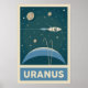 Eine Retro-Abbildung von Uranus mit einem Raketenschiff.