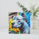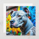 Farbenfrohe blaue, gelbe, rote und grüne digitale Kunst mit einem Pitbull, der auf einer von Graffiti Street Art umgebenen Straße sitzt.