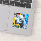 Farbenfrohe blaue, gelbe, rote und grüne digitale Kunst mit einem Pitbull, der auf einer von Graffiti Street Art umgebenen Straße sitzt.