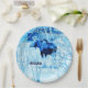 Ein blaues und weißes Bild einer Kuh Elche in urbaner Umgebung im Winter. Es erscheint auch der Text "Alaska" mit individualisierbarem Text. Elche sind das ganze Jahr über Einwohner in vielen Alaskan Gemeinden. Hier in Anchorage gibt es ca. 1500 Tiere, zusammen mit Wölfen, Braunbären und anderen Wildtieren. Sie sind meist gut benommen. Sie überqueren oft die Straßen an der Kreuzung, nachdem sie für ein Spaziersignal gewartet haben.