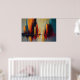 The composition feels both structured and expressive. Strong vertical lines suggest stability and scale, while loose edges and painterly drips introduce emotion and spontaneity. Reflections and layered color fields hint at streets, windows, and urban reflections without becoming literal, allowing the city to exist as a mood rather than a specific place.