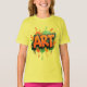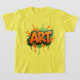 A bold graffiti-style typography artwork bursting with urban energy. The word “ART” explodes from a deep black background in vibrant orange, outlined with neon green accents. Paint splashes and dripping effects add movement and raw street-art attitude, symbolizing creativity without limits. The contrast of sharp lettering and fluid splatters reflects the fearless, expressive nature of modern art culture.