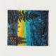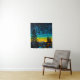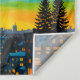 Eine faszinierende Nachtszene mit einer leuchtenden City-Skyline unter einem kosmischen Sternenhimmel. Die goldenen Fenster kontrastieren wunderschön mit der tiefen Blues und den Grüntönen der Nacht. Eine kurvenreiche Straße und mächtige Kiefern bereichern diese ruhige urbane Landschaft.