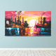 Obwohl abstrakt, weist das Gemälde auf ein Stadtbild bei Dämmerung hin. Die dunklen, industriellen Elemente im Vordergrund stehen im Kontrast zum pulsierenden, leuchtenden Horizont, der die Spannung zwischen Natur und menschlicher Zivilisation symbolisiert.