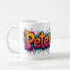 Cool, frech und absolut einzigartig – dieses bunte Graffiti-Motiv mit dem Namen Peter bringt frischen Style auf deine Tasse, dein Shirt oder jedes andere Produkt. Die dynamischen Farbspritzer im Hintergrund sorgen für echten Street-Art-Vibe.