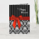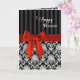 Elegante Schwarz-Weiß-Muster mit rotem Bogen/Band-Imitat. Design auch innen. Das Bild wurde digital für einen realistischeren Effekt entwickelt, einschließlich der roten Schleife und der Schleife der Imitate. Sehen Sie dasselbe Bild für Frohe Weihnachten. Personalisieren Sie das Innere mit Ihrem Namen