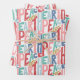 Dieses festliche Packpapier-Set enthält drei verschiedene handgeschriebene Designs mit den Sätzen "Weltfrieden", "Merry and Bright" und "Joy". Die Schrift ist strategisch strukturiert.