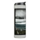Ein digitales Landschaftsbild von Maine, das von der Spitze des Cadillac Mountain aus gesehen wird. Ein Sturm rollt vom Meer herein, da die Meeresschicht dick ist und die Umwelt verbrauchen wird. Das Leuchtturm Pemaquid Point wurde am Rande der Szene in der Bucht aufgestellt. Eine Gartenspinne ist an ihrer Seidenschnur in der unteren Ecke. Willkommen im Vacationland, Maine. Die Staatlichkeit wurde 1820 gegründet. Image Copyright ©2023 Kimberly J Tilley.