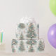 Eine bezaubernde Rolle Weihnachtsverpackungspapier mit wunderschön illustrierten Bäumen, die mit pastellfarbenen Ornamenten, Beeren und Sternen geschmückt sind und eine festliche Stimmung für die Ferienzeit schaffen.