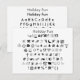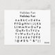 Holiday Fun ~ Zazzle Schriftart Sampler Sheet ~ mit einem Leitfaden auf der Rückseite in einem Standard Futura Medium Schriftart, um anzugeben, welche Buchstaben, Zahlen oder Symbole im Sampler Schriftart verwendet wurden. [HINWEIS: Dieses Mustertuch wird auf einer 2-seitigen Postkarte präsentiert - 1 Seite ist das Mustertuch und die andere Seite ist die Führung. Da beide Seiten mit Text versehen sind, kann die Postkarte nicht per Post verschickt werden, es sei denn, sie wird zuerst in einen separaten Umschlag gesetzt usw.]