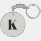 Einfache, stilvolle, kundenspezifische Anfangsbuchstaben Monogramm Schlüsselanhänger in moderner minimalistischer Typografie in schwarz auf putty-grauem Hintergrund. Ein perfektes Geschenk oder Accessoire mit persönlicher Touch!