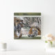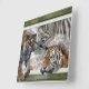 Schöne digitale Kunst mit zwei Tigern mit 3D-Effekt, die scheinbar aus dem Bilderrahmen springen. Hintergrund mit Giraffe und Zebra. Eine wunderbare wilde Tierkunst ist eine wunderbare Geschenkidee für Naturliebhaber.
