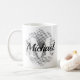 Personalisierte Kaffeebeutel mit Initial und Name in schwarz, weiß auf grauem halftone vortex. Elegante, neutrale Farben. Bearbeiten Sie Text, um den Anfangsbuchstaben und -namen zu personalisieren.
