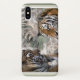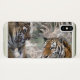 Schöne digitale Kunst mit zwei Tigern mit 3D-Effekt, die scheinbar aus dem Bilderrahmen springen. Hintergrund mit Giraffe und Zebra. Eine wunderbare wilde Tierkunst ist eine wunderbare Geschenkidee für Naturliebhaber.