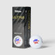 Niedlicher Hundekuchen im Stil eines Cartoon mit amerikanischer Fahne. Maßgeschneiderte Golfbälle für Hundefreunde. Alles, was gesehen wird, ist bedruckt, es wird keine eigentliche Prägung für die Herstellung dieses Produktes verwendet. Geschenkidee für Damen und Herren.