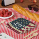 American Flag 1776 Juli 4. Party Paper Teller. Feiern Sie den Unabhängigkeitstag mit dieser patriotischen Fahne der USA mit dem Jahr 1776 in weißer altenglischer Typografie. Rot, Navy Blau und Off White US Flagge Design. Bestellen Sie noch heute Ihre Servietten.