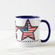Zeigen Sie Ihren amerikanischen Stolz mit dieser atemberaubenden Tasse in blauer Keramik, die ein kühn gestaltetes Sternendesign in den Farben der amerikanischen Fahne zeigt. Oben auf der Tasse sieht man einen großen Stern in Rot, Weiß und Blau mit fünf kleineren blauen Sternen darunter, das ganze Set vor einem sauberen, patriotischen Hintergrund. Ideal, um Ihr Lieblingsgetränk zu genießen und gleichzeitig die US Flagge der Vereinigten Staaten zu feiern. Diese Tasse ist ein ideales Geschenk für jeden, der Amerika Liebe oder will, seine Geschichte und Kultur zu feiern.