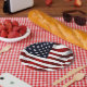 Beginnen Sie Ihren Tag mit der patriotischen Art; klassische Fahne der USA mit rot, weiß und blau.