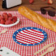 Rot-weiß gestreifte Teller mit blauen Sternengrenzen
