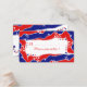 Das patriotische Design in Rot, Weiß und Blau mit gewellten Linien und Sternen. Text anpassen.