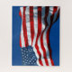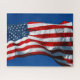 Flagge der USA. Dreizehn horizontale Streifen abwechselnd rot und weiß; im Kanton 50 weiße Sterne mit abwechselnden Zahlen von sechs und fünf pro Reihe auf einem blauen Feld. Die Flagge der USA, oft als amerikanische Flagge bezeichnet, ist die Nationalflagge der Staaten.