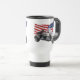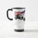 Diese Qualitäts-Tassen zeigen ein modernes Trike mit der Amerika-Flagge im Hintergrund an. Nichts sagt Freiheit wie die offene Straße!