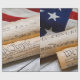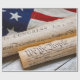 Kopien of the Declaration of Independence and US Verfassung in rolled up scrolls with a vintage American flag