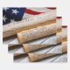 Kopien of the Declaration of Independence and US Verfassung in rolled up scrolls with a vintage American flag