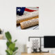 Kopien of the Declaration of Independence and US Verfassung in rolled up scrolls with a vintage American flag