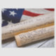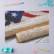Kopien of the Declaration of Independence and US Verfassung in rolled up scrolls with a vintage American flag