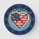 Diese herzförmige amerikanische Flagge ist das perfekte Geschenk für jeden Patrioten. Wenn Sie es anpassen möchten, können Sie das Bild verändern und sogar Ihre eigene Nachricht eingeben! Probieren Sie es aus und machen Sie Ihr einzigartiges personalisiertes Design!
