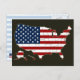 US Flagge unter Landesflagge. Die Karte der USA mit der amerikanischen Flagge