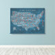 © Michael Mullan / Wild Apple. Illustrierte Karte der USA in Rot-Weiß mit Staaten und Hauptstädte