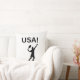 US-Tennisspieler, der den Punkt des Ausrufepunktes als Kugel benutzt. Schwarzes Bild auf weißem Hintergrund