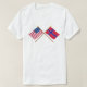 Die leicht wellenartig bewegenden Flaggen der Vereinigten Staaten und Ihres "anderen" Lieblingsplatzes auf gekreuzten Pfosten sind eine ausgezeichnete Weise, Ihre Zuneigungen anzuzeigen oder Verbindungen. Ob Ihr gegenwärtiges oder ererbtes Zuhause, someplace Sie besucht haben oder besuchen möchten, oder gerade weil Sie diese Flagge mögen, ist dieses Shirt für Sie! Groß für Vereine und Organisationen, besondere Anlässe oder gerade weil!
