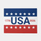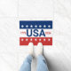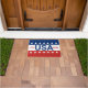 Celebrating the USA's 250th anniversary. This red, white, and blue doormat has the word 'USA' in the center. The years 1776 and 2026 are next to USA. The top stripe is blue and has white stars. The center stripe is white. The bottom stripe is red with white stars.