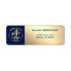 On the right, your personal return information ça, be customized and are printed in marine blue over a gold background.