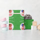 Design, auf Geschenkpapier, hat einen afroamerikanischen Engel, der die Fahne der USA trägt. Oben, die Worte, in weißen Buchstaben, lesen, CHRISTMAS 20?? Unten, ein Ort für einen Namen, Ihren, für ein personalisiertes Aussehen, oder, Ihre Geschenkempfängerin für eine durchdachte, maßgeschneiderte Geschenkpackung. Der Engel sitzt auf einem weißen Kreis, der ein Fraktal ist. Alles liegt auf einem Fraktal mit grünen quadratischen Quadraten.