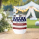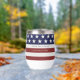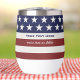 Feiern Sie die USA mit diesem patriotischen Wein / Kaffeemaschine. Das Design zeichnet sich durch eine amerikanische Flagge inspirierte Muster von roten und weißen Streifen und weißen Sternen. Personalisieren Sie das Programm mit 2 Zeilen benutzerdefiniertem Text. Ideal für ein 4. Party, Veteranen-Tag oder Homecoming oder alltägliche Feier der USA.