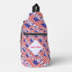 Der personalisierte Sling-Sack ist mit der Rot-, Weiß- und Blautafel der USA in den Fahnen mit den Buchstaben USA unterlegt. Design ist für einen künstlerischen Effekt gekachelt. Ein weißer Raum mit quadratischen Quadraten bietet einen Platz für Ihren Namen, um eine personalisierte Touch hinzuzufügen. Wenn Sie dies als maßgeschneidertes Geschenk geben möchten, tragen Sie einfach den Namen eines anderen hinzu. Vergnügen, wenn Sie mit Wiedersehen, Reisegruppen oder Clubs reisen. Wunderbar für die Rückkehr in die Schule. Wunderbares Geschenk für die reisende Mama oder Vater am Muttertag oder Vatertag.