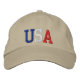 Zeigen Sie mit diesem blau-weiß und rot bestickten Hut Ihre Unterstützung für die USA. Reads USA.