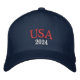 Hat gezeigt in Navy mit Red and White bestickt Text: USA 2024. Passen Sie dieses Objekt an oder kaufen Sie, wie es ist.
